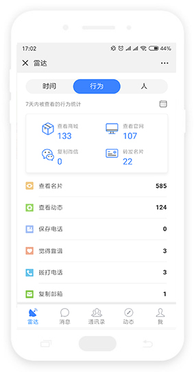 AI智能雷达 聊天消息列表 用户行为跟踪 客户兴趣、活跃度AI分析