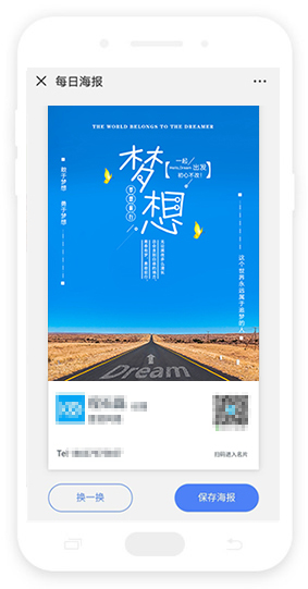 系统内置数十套海报模板 也可自己上传模板 一键分享到朋友圈